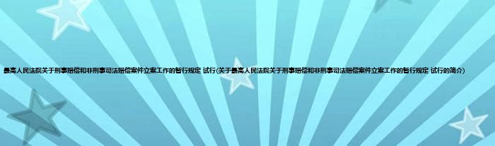 最高人民法院关于刑事赔偿和非刑事司法赔偿案件立案工作的暂行规定 试行(关于最高人民法院关于刑事赔偿和非刑事司法赔偿案件立案工作的暂行规定 试行的简介)