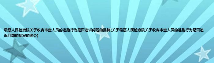 本文关于最高人民检察院关于收容审查人员的逃跑行为是否追诉问题的批复的简介就讲解完毕,希望对大家有所帮助。