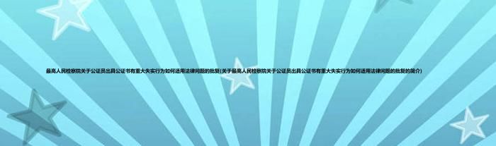 最高人民检察院关于公证员出具公证书有重大失实行为如何适用法律问题的批复(关于最高人民检察院关于公证员出具公证书有重大失实行为如何适用法律问题的批复的简介)