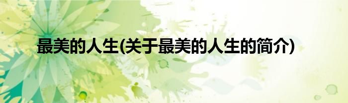 本文关于最美的人生的简介就讲解完毕,希望对大家有所帮助。
