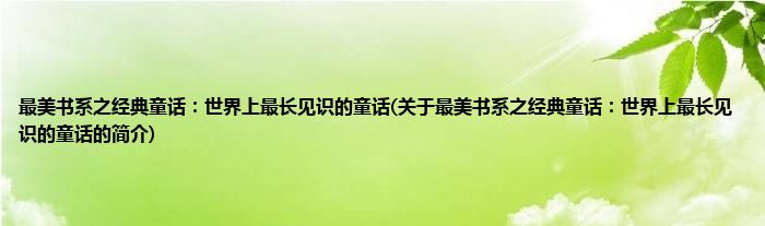 本文关于最美书系之经典童话:世界上最长见识的童话的简介就讲解完毕,希望对大家有所帮助。