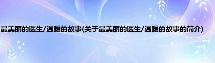 本文关于最美丽的医生/温暖的故事的简介就讲解完毕,希望对大家有所帮助。
