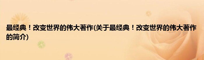 本文关于最经典!改变世界的伟大著作的简介就讲解完毕,希望对大家有所帮助。