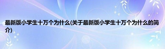 本文关于最新版小学生十万个为什么的简介就讲解完毕,希望对大家有所帮助。