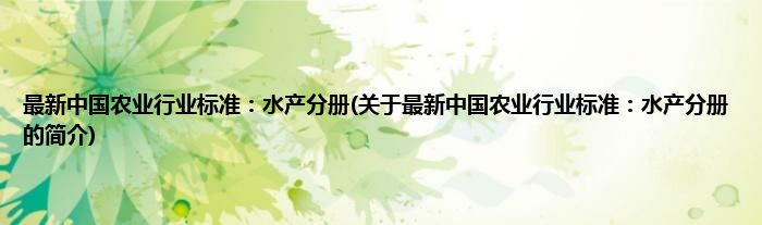 本文关于最新中国农业行业标准:水产分册的简介就讲解完毕,希望对大家有所帮助。