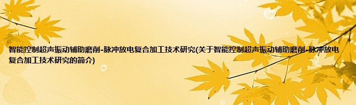 本文关于智能控制超声振动辅助磨削-脉冲放电复合加工技术研究的简介就讲解完毕,希望对大家有所帮助。
