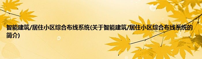 本文关于智能建筑/居住小区综合布线系统的简介就讲解完毕,希望对大家有所帮助。
