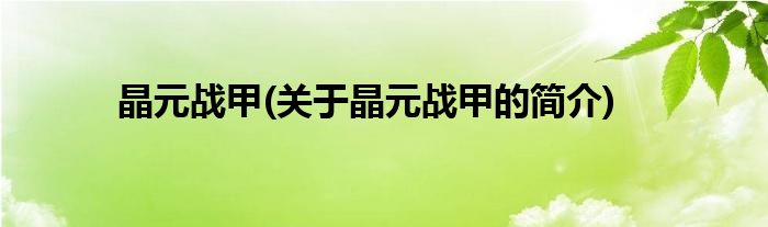 大家好,晶元战甲,关于晶元战甲的简介很多人还不知道,现在让我们一起来看看吧!