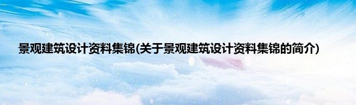 本文关于景观建筑设计资料集锦的简介就讲解完毕,希望对大家有所帮助。