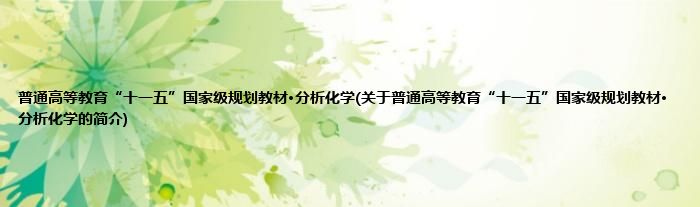 本文关于普通高等教育“十一五”国家级规划教材·分析化学的简介就讲解完毕,希望对大家有所帮助。