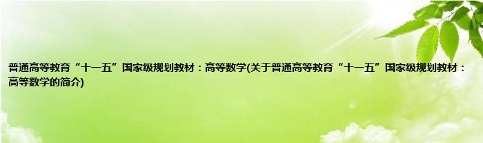 本文关于普通高等教育“十一五”国家级规划教材:高等数学的简介就讲解完毕,希望对大家有所帮助。