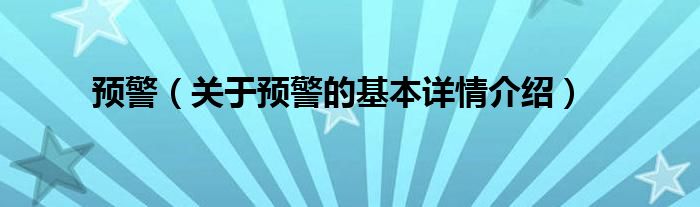 本文关于预警的基本详情介绍就讲解完毕,希望对大家有所帮助。