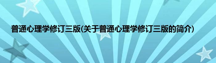 本文关于普通心理学修订三版的简介就讲解完毕,希望对大家有所帮助。