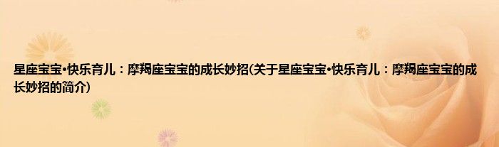 本文关于星座宝宝·快乐育儿:摩羯座宝宝的成长妙招的简介就讲解完毕,希望对大家有所帮助。