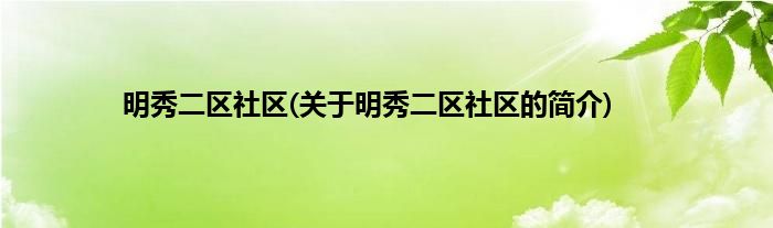 本文关于明秀二区社区的简介就讲解完毕,希望对大家有所帮助。