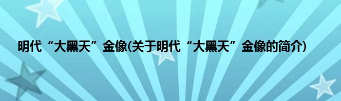 本文关于明代“大黑天”金像的简介就讲解完毕,希望对大家有所帮助。