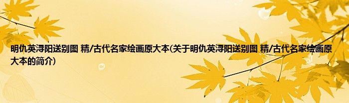本文关于明仇英浔阳送别图 精/古代名家绘画原大本的简介就讲解完毕,希望对大家有所帮助。