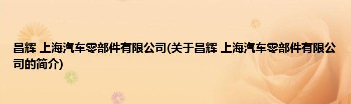 本文关于昌辉 上海汽车零部件有限公司的简介就讲解完毕,希望对大家有所帮助。