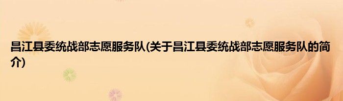 1、 昌江县委统战部志愿服务队是由昌江黎族自治县志愿者协会领导下的志愿团体。
