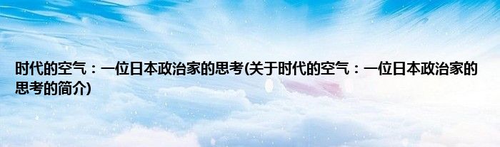 本文关于时代的空气:一位日本政治家的思考的简介就讲解完毕,希望对大家有所帮助。