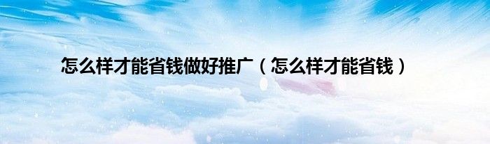 怎么样才能省钱做好推广(怎么样才能省钱)