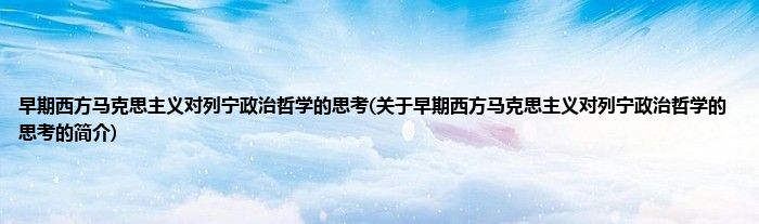 本文关于早期西方马克思主义对列宁政治哲学的思考的简介就讲解完毕,希望对大家有所帮助。
