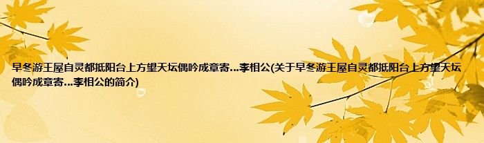 本文关于早冬游王屋自灵都抵阳台上方望天坛偶吟成章寄…李相公的简介就讲解完毕,希望对大家有所帮助。