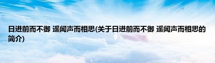 本文关于日进前而不御,遥闻声而相思的简介就讲解完毕,希望对大家有所帮助。