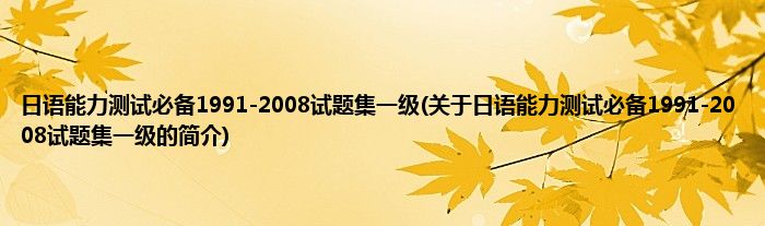 本文关于日语能力测试必备1991-2008试题集一级的简介就讲解完毕,希望对大家有所帮助。