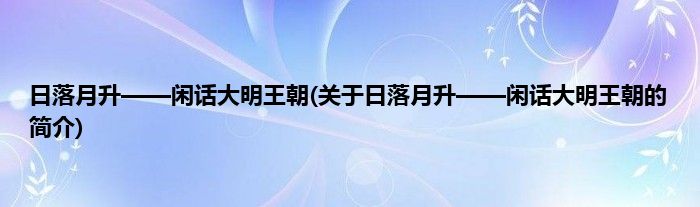 本文关于日落月升——闲话大明王朝的简介就讲解完毕,希望对大家有所帮助。
