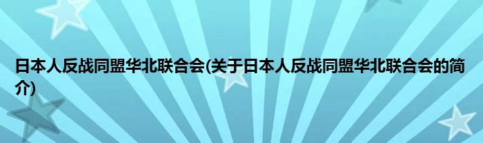 本文关于日本人反战同盟华北联合会的简介就讲解完毕,希望对大家有所帮助。