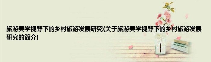 大家好,旅游美学视野下的乡村旅游发展研究,关于旅游美学视野下的乡村旅游发展研究的简介很多人还不知道,现在让我们一起来看看吧!
