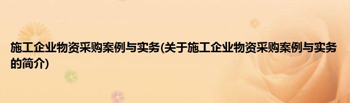 本文关于施工企业物资采购案例与实务的简介就讲解完毕,希望对大家有所帮助。