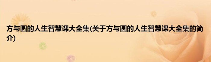 方与圆的人生智慧课大全集(关于方与圆的人生智慧课大全集的简介)