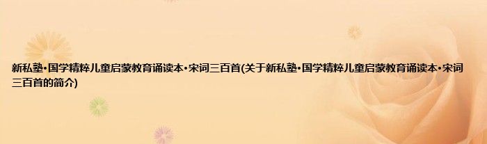 本文关于新私塾·国学精粹儿童启蒙教育诵读本·宋词三百首的简介就讲解完毕,希望对大家有所帮助。