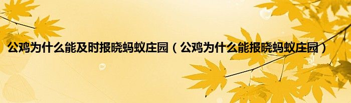 大家好,精选小编来为大家解答以上问题。公鸡为什么能及时报晓蚂蚁庄园,公鸡为什么能报晓蚂蚁庄园很多人还不知道,现在让我们一起来看看吧!