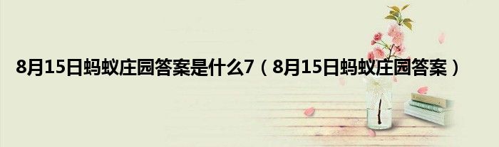 大家好,精选小编来为大家解答以上问题。8月15日蚂蚁庄园答案是什么7,8月15日蚂蚁庄园答案很多人还不知道,现在让我们一起来看看吧!