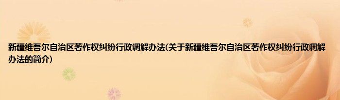 大家好,新疆维吾尔自治区著作权纠纷行政调解办法,关于新疆维吾尔自治区著作权纠纷行政调解办法的简介很多人还不知道,现在让我们一起来看看吧!