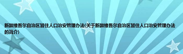 本文关于新疆维吾尔自治区暂住人口治安管理办法的简介就讲解完毕,希望对大家有所帮助。