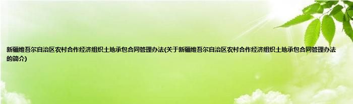 大家好,新疆维吾尔自治区农村合作经济组织土地承包合同管理办法,关于新疆维吾尔自治区农村合作经济组织土地承包合同管理办法的简介很多人还不知道,现在让我们一起来看看吧!