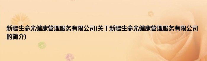 本文关于新疆生命光健康管理服务有限公司的简介就讲解完毕,希望对大家有所帮助。