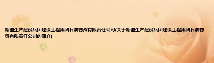 本文关于新疆生产建设兵团建设工程集团石油物资有限责任公司的简介就讲解完毕,希望对大家有所帮助。