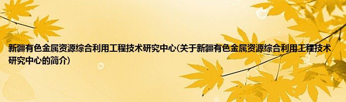 本文关于新疆有色金属资源综合利用工程技术研究中心的简介就讲解完毕,希望对大家有所帮助。