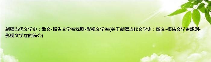 本文关于新疆当代文学史:散文·报告文学卷戏剧·影视文学卷的简介就讲解完毕,希望对大家有所帮助。