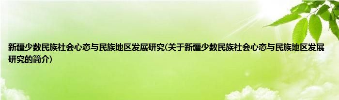 本文关于新疆少数民族社会心态与民族地区发展研究的简介就讲解完毕,希望对大家有所帮助。