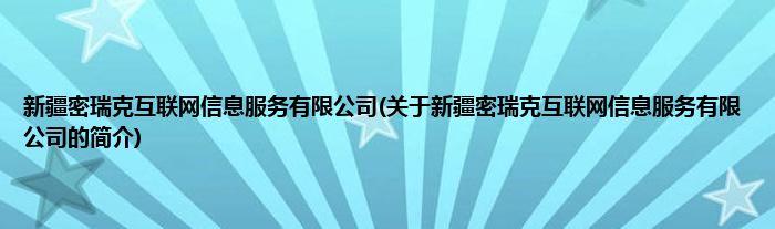 本文关于新疆密瑞克互联网信息服务有限公司的简介就讲解完毕,希望对大家有所帮助。
