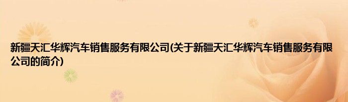 大家好,新疆天汇华辉汽车销售服务有限公司,关于新疆天汇华辉汽车销售服务有限公司的简介很多人还不知道,现在让我们一起来看看吧!