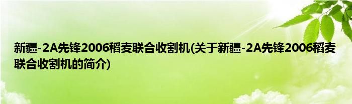 本文关于新疆-2A先锋2006稻麦联合收割机的简介就讲解完毕,希望对大家有所帮助。