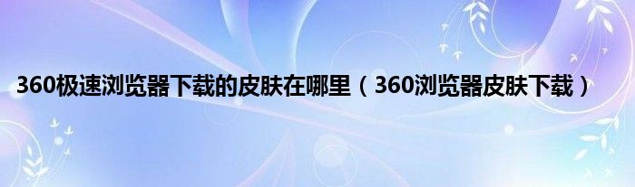 大家好,精选小编来为大家解答以上问题。360极速浏览器下载的皮肤在哪里,360浏览器皮肤下载很多人还不知道,现在让我们一起来看看吧!