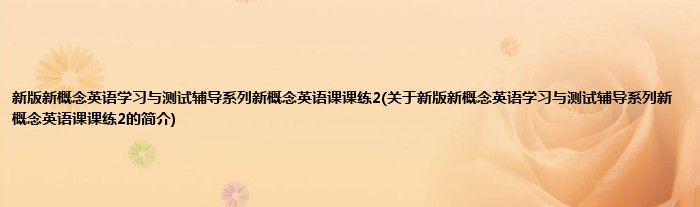 本文关于新版新概念英语学习与测试辅导系列新概念英语课课练2的简介就讲解完毕,希望对大家有所帮助。